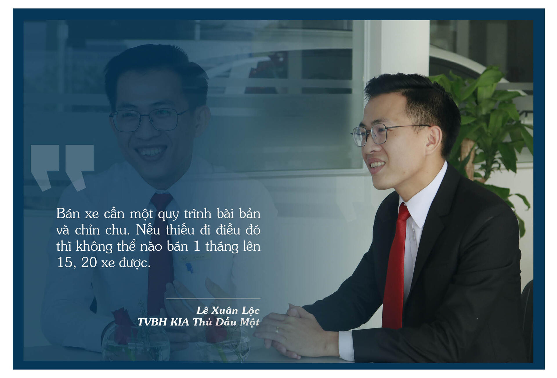 Anh Lộc nhớ lại những ngày đầu khi vào showroom KIA Thủ Dầu Một. Hai tháng đầu tiên anh được đào tạo về sản phẩm, anh cũng chủ động học hỏi kinh nghiệm từ đồng nghiệp, giao lưu với các tư vấn bán hàng ở những hãng xe khác. Thế nhưng, hai tháng sau khi vào làm việc chính thức, kết quả không như anh mong đợi.