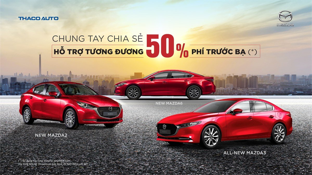 Mazda Việt Nam triển khai chương trình đặc biệt với gói hỗ trợ tương đương 50% lệ phí trước bạ cho khách hàng mua Mazda2, Mazda3, Mazda CX-5 (*) cùng nhiều ưu đãi lớn dành cho các phiên bản Mazda khác.