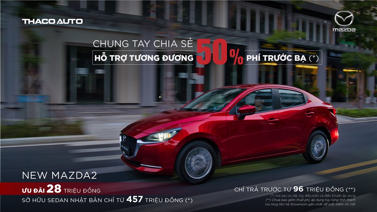 Bên cạnh các mẫu SUV, khách hàng mua hai mẫu sedan New Mazda2  All-New Mazda3 trong tháng này cũng được hỗ trợ tương đương với 50% lệ phí trước bạ. Cụ thể, New Mazda2 nhận gói hỗ trợ đến 28 triệu đồng, đưa giá bán khởi điểm của mẫu xe này về mức 457 triệu đồng, cùng ưu đãi trả trước chỉ từ 96 triệu đồng. Như vậy, việc sở hữu mẫu xe cỡ B nhiều công nghệ và thiết kế hợp xu hướng trở nên dễ dàng hơn với khách hàng Việt.