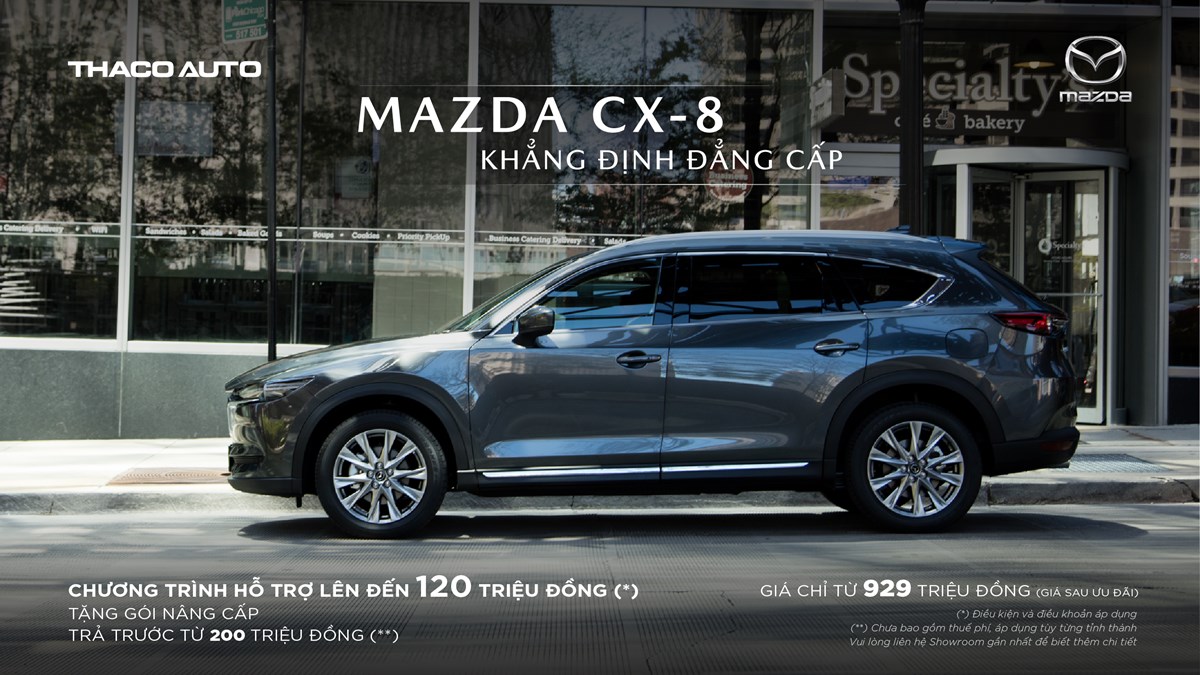 Mức hỗ trợ cao nhất của Mazda sẽ nằm ở các mẫu SUV cao cấp như Mazda CX-8, Mazda CX-5. Theo đó, mẫu xe 7 chỗ thực thụ đến từ thương hiệu Nhật Bản, CX-8 được hỗ trợ cao nhất đến 120 triệu đồng cho bản Deluxe, bao gồm ưu đãi trực tiếp giá bán đến 70 triệu đồng, cùng gói phụ kiện nâng cấp trị giá 50 triệu đồng. Mức giá CX8- Deluxe sau khi giảm chỉ còn 929 triệu đồng, cùng ưu đãi vay mua xe hấp dẫn, khách hàng chỉ cần trả trước từ 200 triệu đồng.